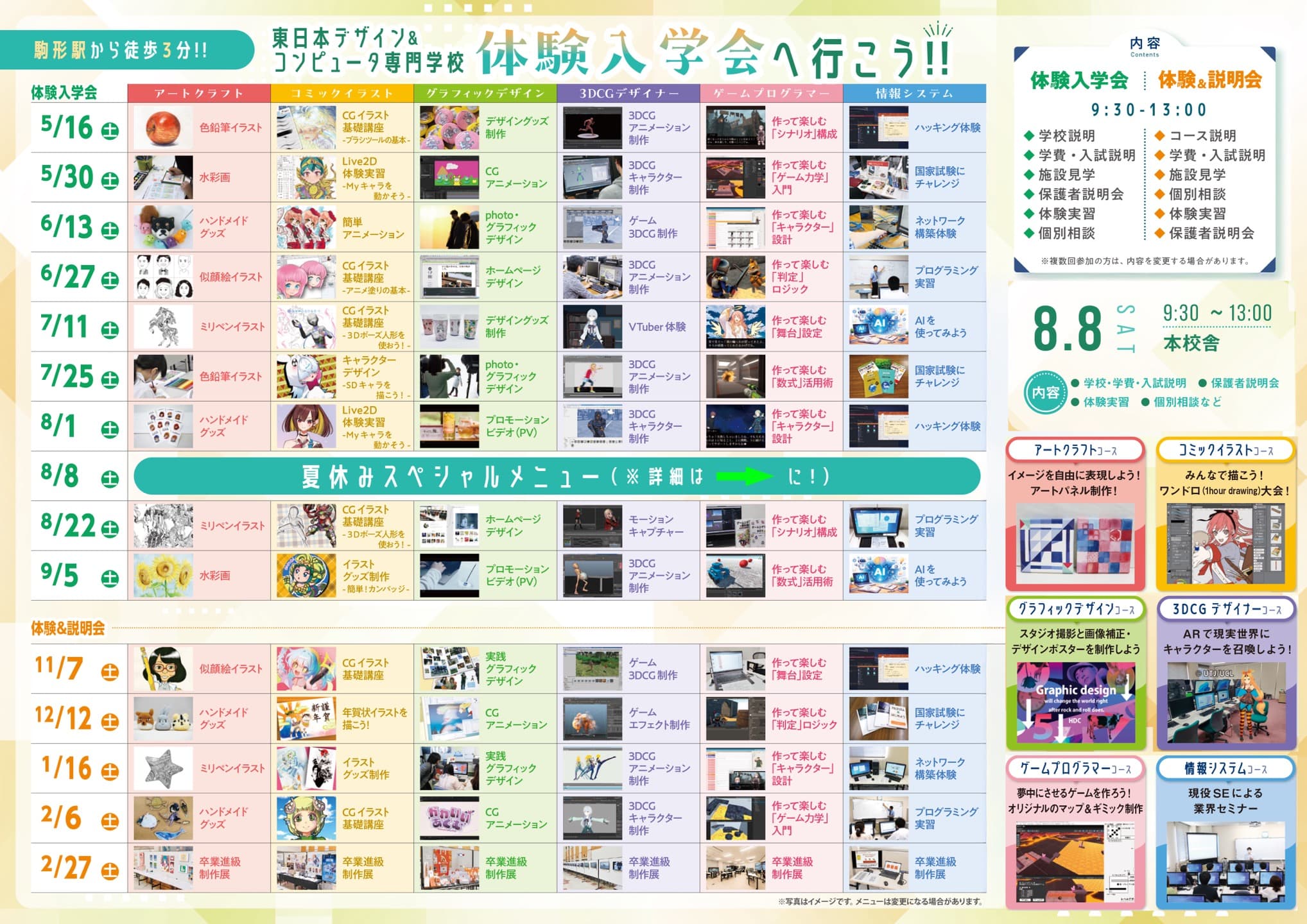 ●学校説明、学費・入試説明、施設見学、体験実習、保護者説明会、昼食など