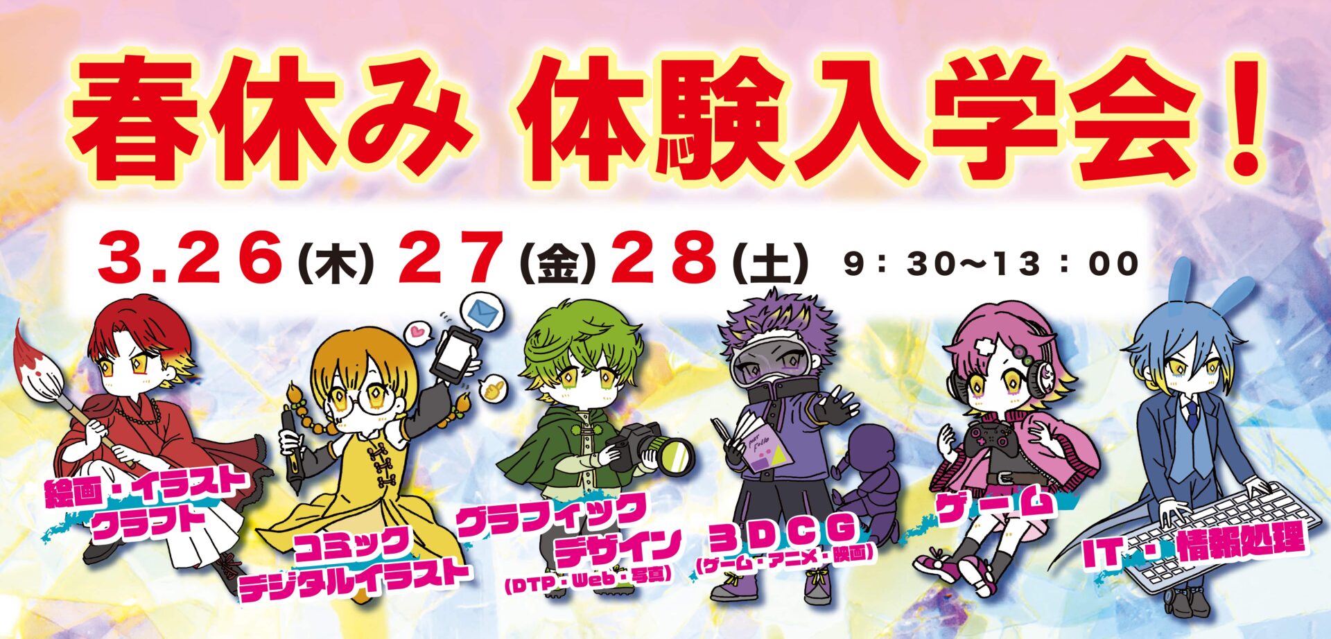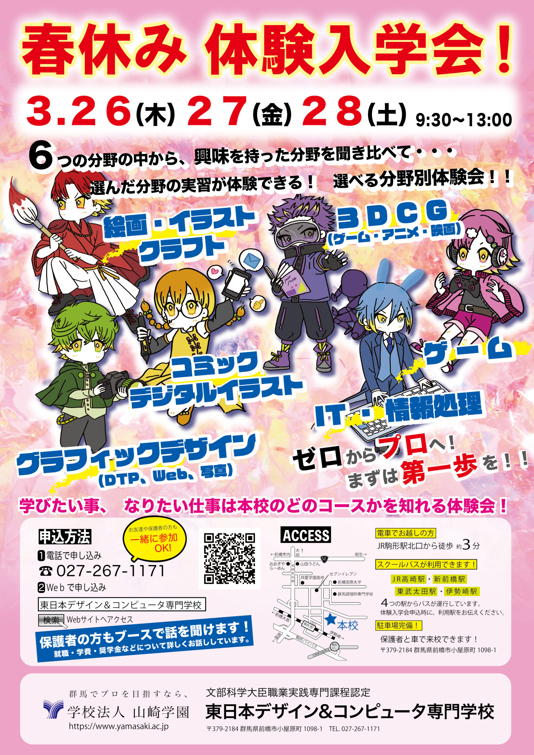 春休み体験入学会を3月26日(木)、27日(金)、28日(土)